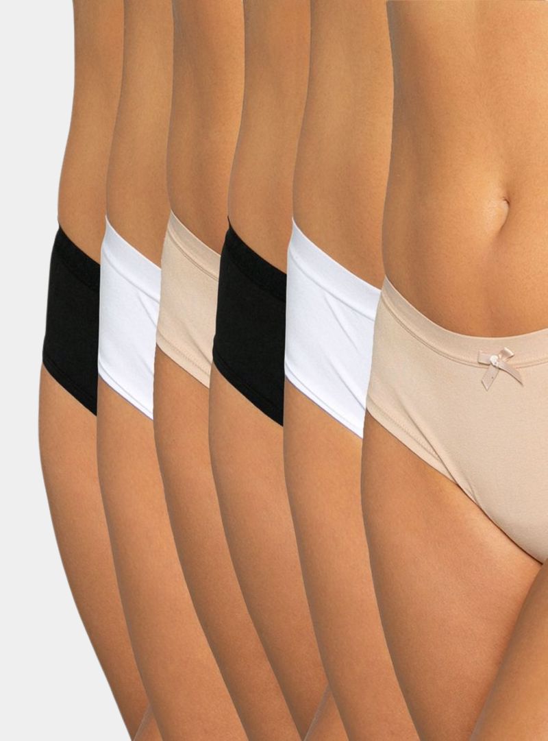 El Pack de 6 Pantaletas de Algodón es ese básico infalible que te acompaña todos los días con suavidad, confort y un calce confiable. Diseñadas para el uso diario, ofrecen una sensación natural y agradable sobre la piel desde el primer momento.Confeccionadas en 90% algodón y 10% elastano, combinan respirabilidad, suavidad y la elasticidad justa para adaptarse al cuerpo sin apretar. La terminación con banda elástica en el contorno de caderas brinda un ajuste cómodo y seguro, manteniendo la prenda en su lugar durante todo el día.