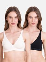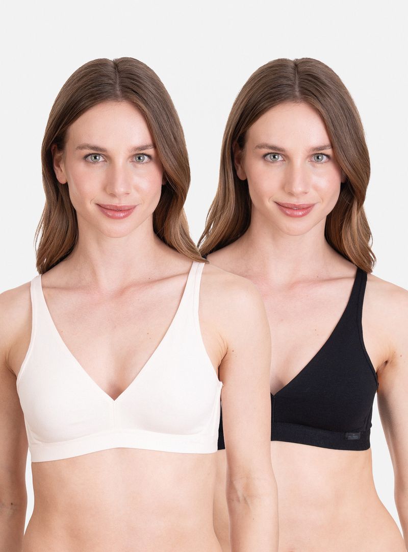 Pack de 2 sostenes de algodón suave que entregan comodidad y soporte total para el uso diario. Su diseño sin arco con padding brinda contención natural, mientras los tirantes ajustables con opción deportiva aseguran un calce firme, cómodo y versátil durante todo el día.