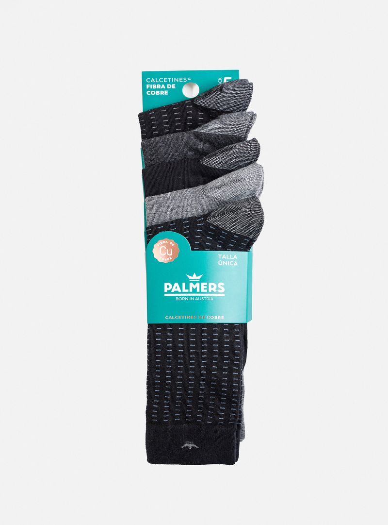 Pack de 5 calcetines de calce largo de vestir confeccionados con fibra de cobre, diseñados para ofrecer confort y cuidado diario. Su tejido aporta beneficios como favorecer la cicatrización de pequeñas heridas y reducir el riesgo de infecciones, mientras que su acción bactericida natural ayuda a eliminar bacterias y hongos, previniendo malos olores y manteniendo los pies frescos. Además, son suaves, transpirables y perfectos para el uso diario, con talón y punteras reforzadas que proporcionan mayor durabilidad y confort en cada paso.