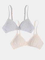 Pack 2 sostén de algodón con padding removible, suaves y cómodos para uso diario. Con delicado lazo decorativo, breteles ajustables y base elástica que brinda soporte natural. Confeccionados en algodón peinado con elastano para mayor confort y ajuste.