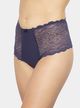 Su diseño de tiro alto incorpora encaje delicado en los laterales, aportando un look femenino y refinado, mientras que la pieza central en microfibra embolsada ofrece mayor suavidad y confort en contacto con la piel. En su interior, cuenta con powernet integrado, que entrega un control suave de abdomen, ayudando a estilizar la silueta sin incomodar.