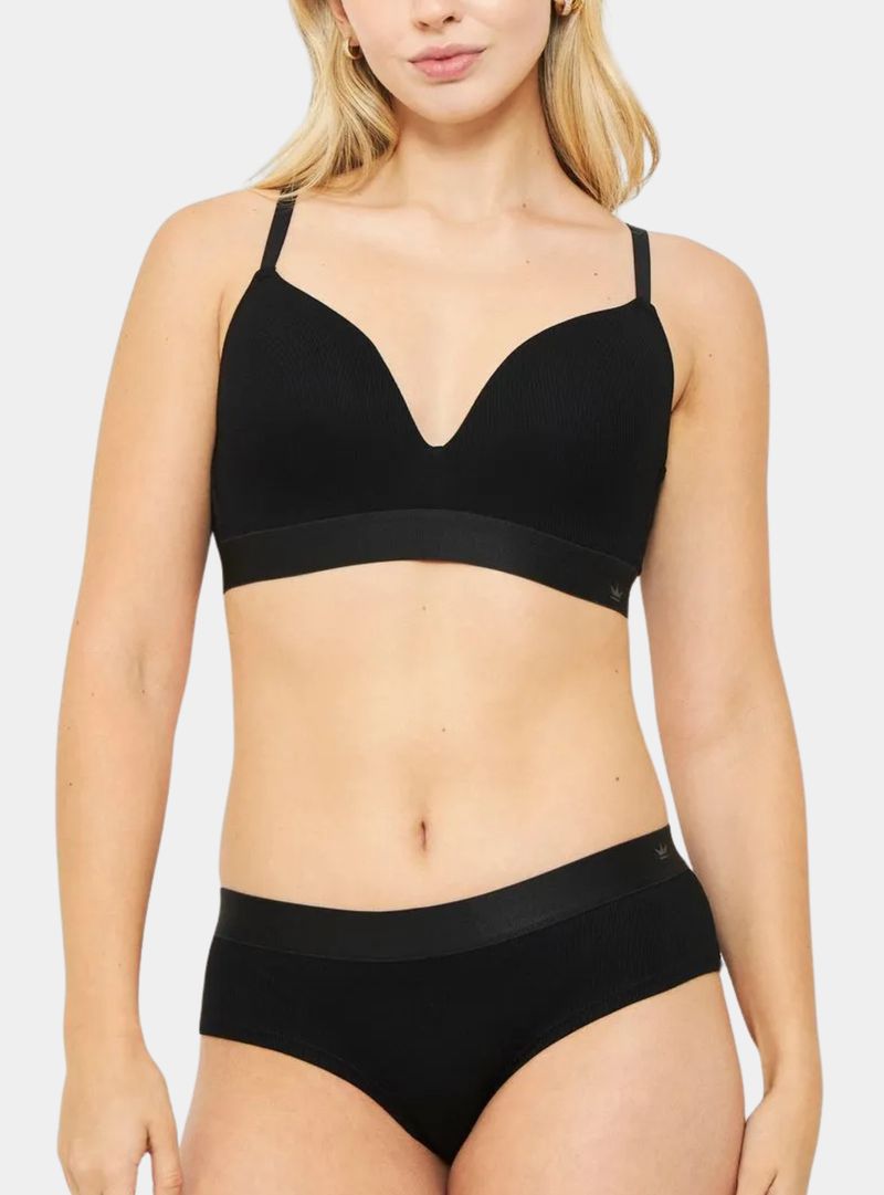 Diseñado para sentirse tan bien como se ve. Este sostén de rib en modal abraza tu piel con una suavidad excepcional, entregando una experiencia de confort ligero y natural durante todo el día.Su copa de cobertura media realza de forma sutil y femenina, mientras que su diseño sin arco permite un calce libre, sin presiones ni molestias. Los straps ajustables se adaptan a ti, ofreciendo un ajuste personalizado que acompaña cada movimiento con total libertad.